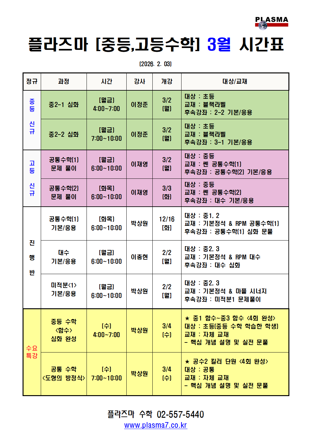 플라즈마학원 모든 강좌들을 확인 해보세요