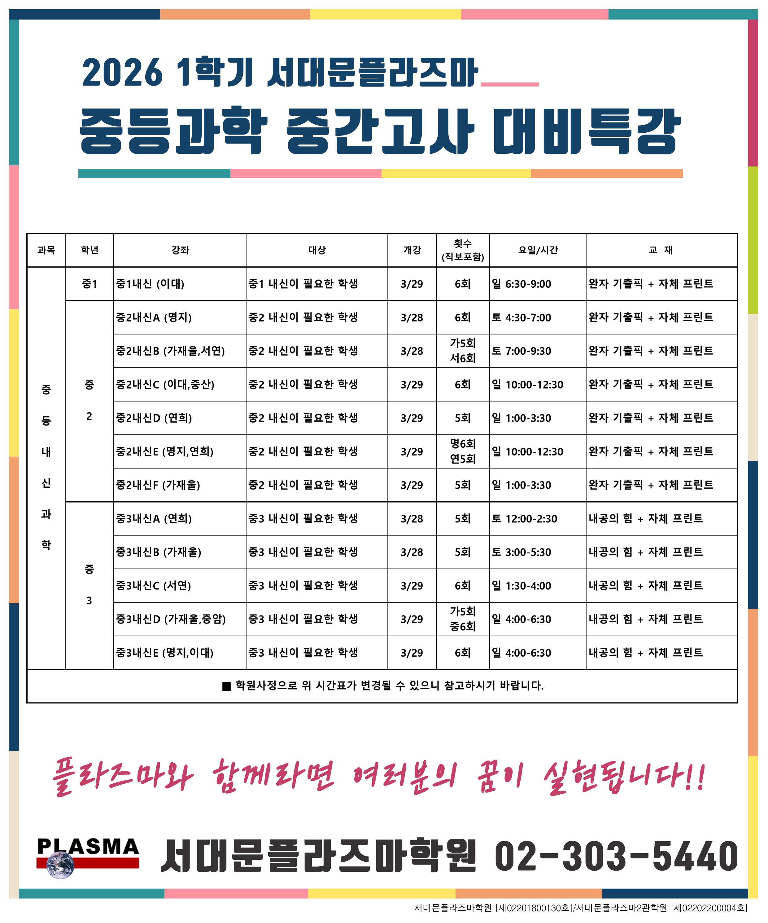 예비고1을 위한 수학/과학 프로그램 개강안내