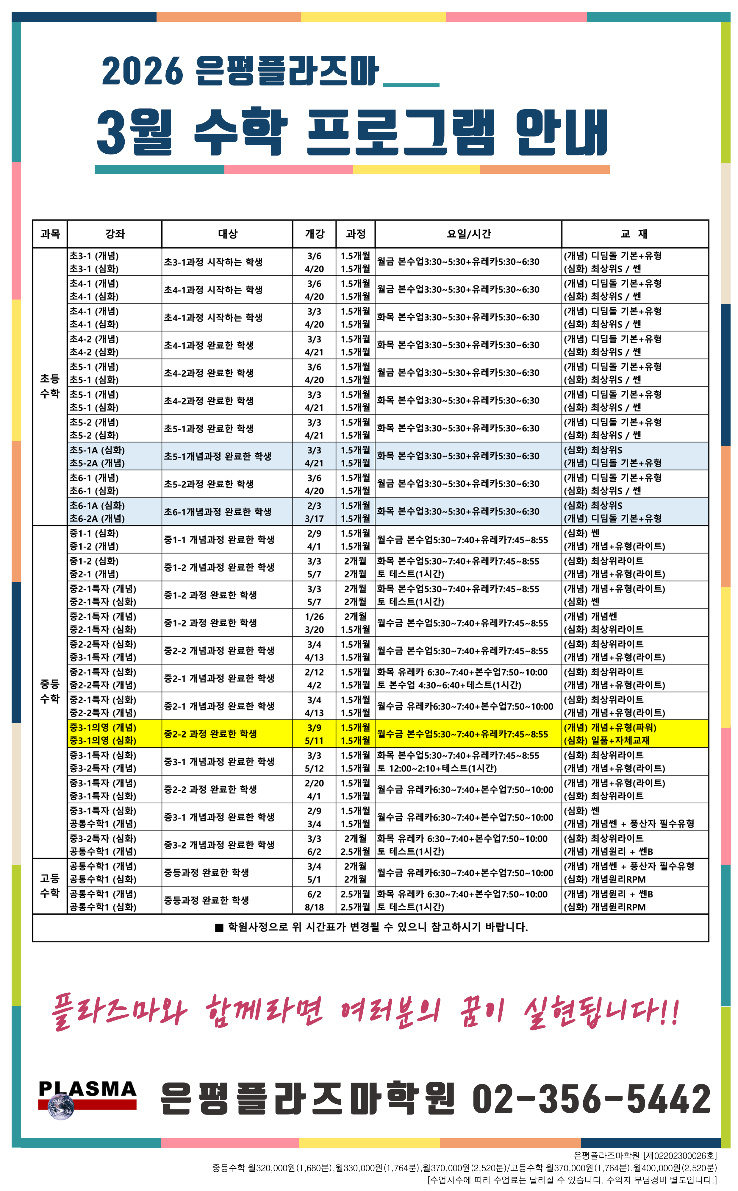 2025. 1월 과학 정규반 시간표안내