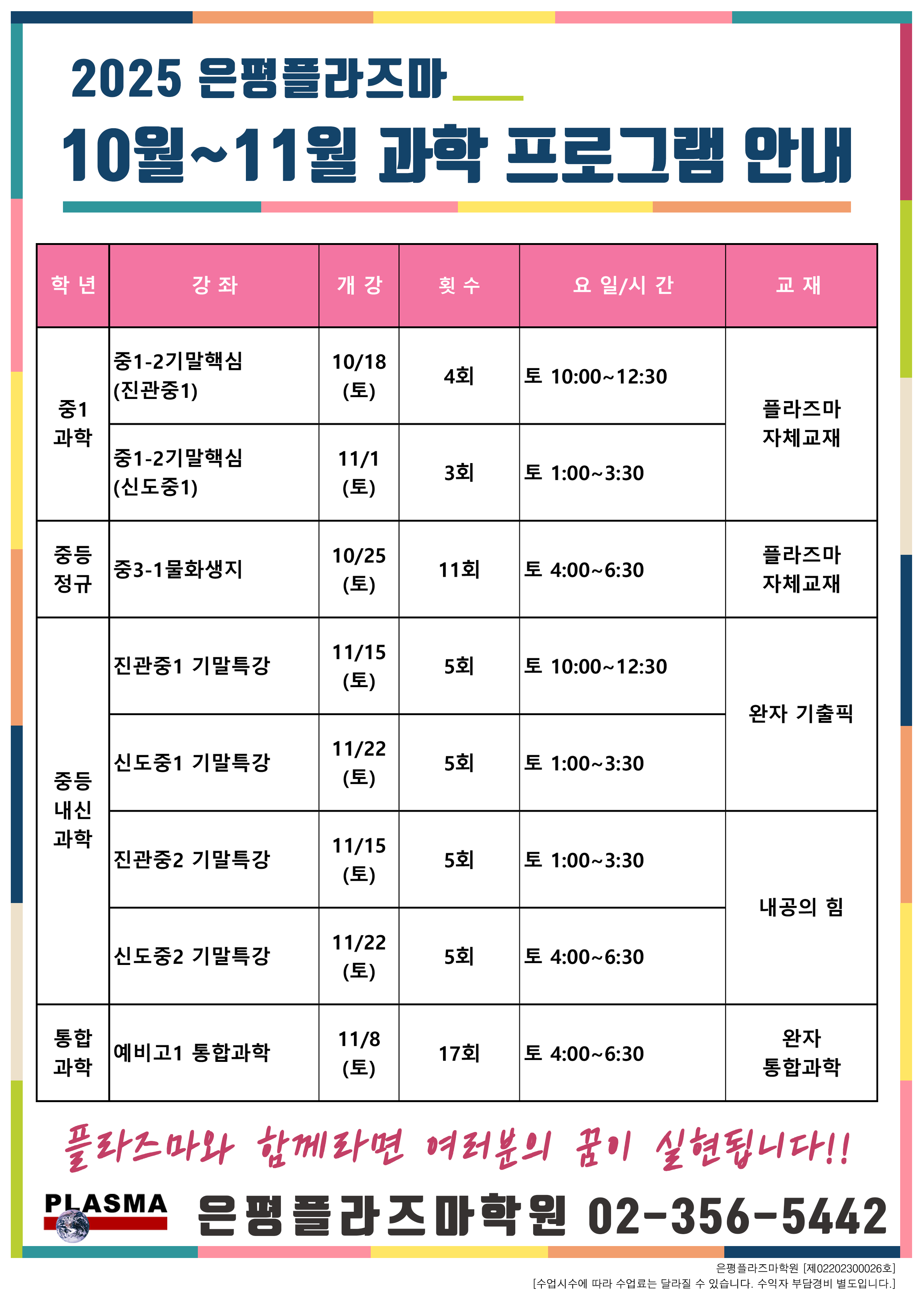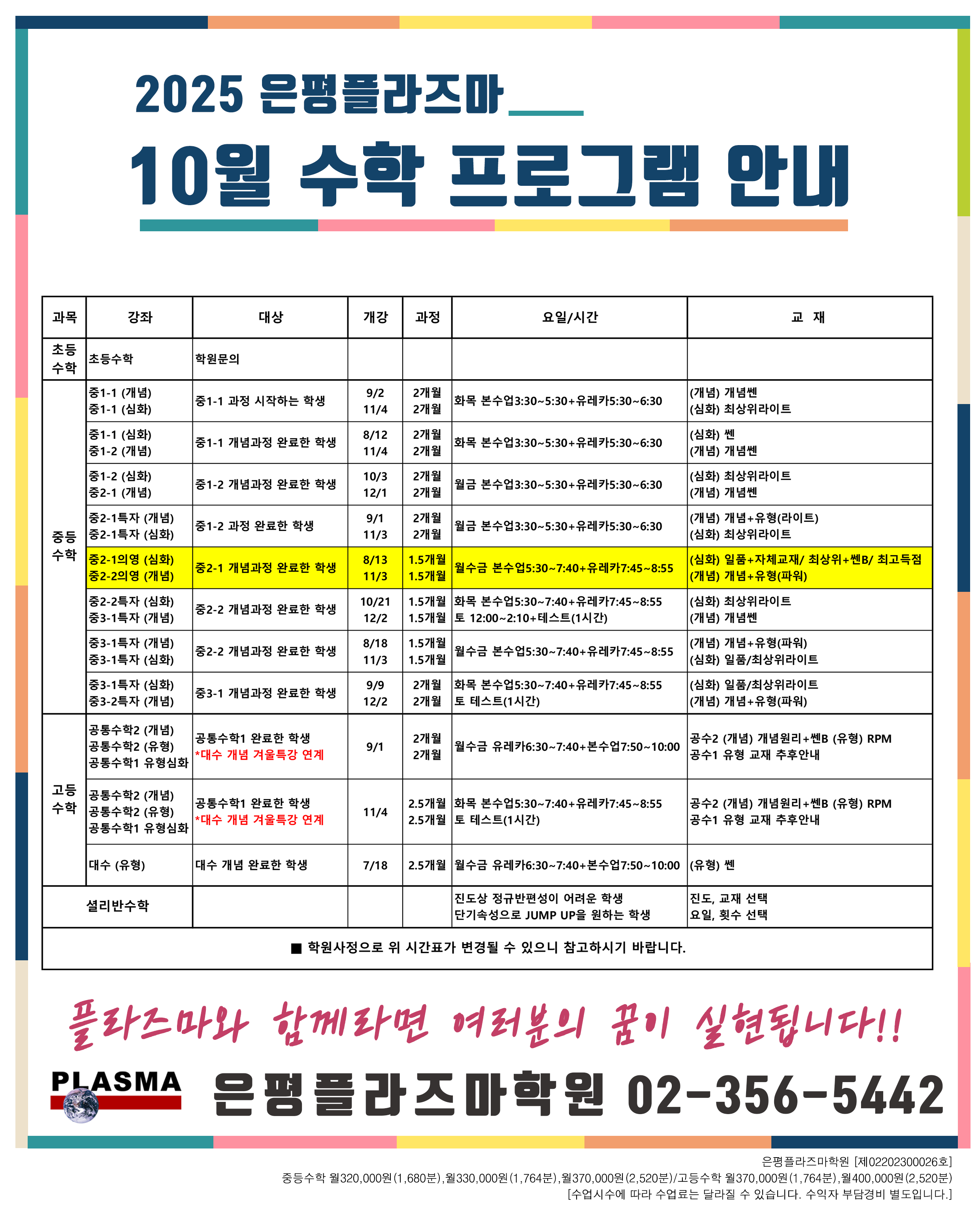 예비고1을 위한 수학/과학 프로그램 개강안내