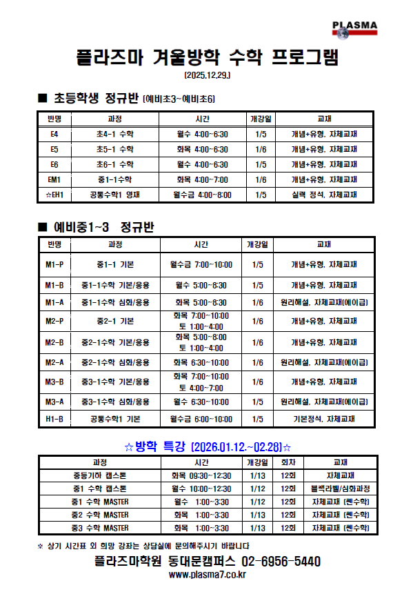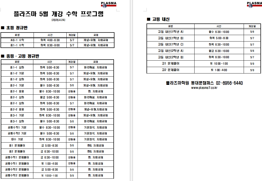 플라즈마학원 모든 강좌들을 확인 해보세요