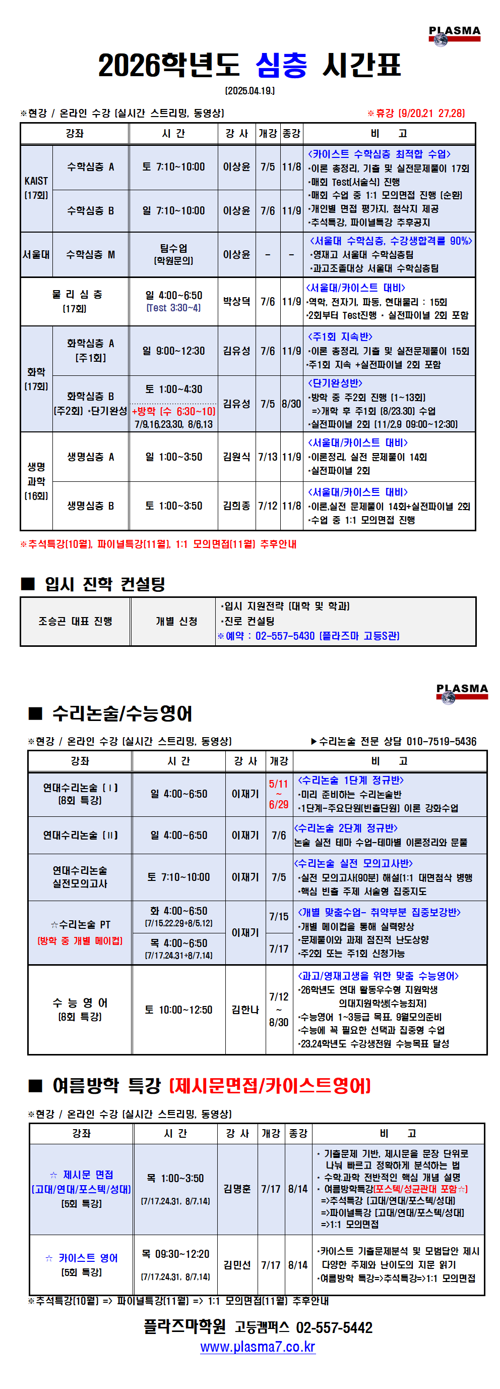 플라즈마 학원의 새로운 소식을 알려드립니다