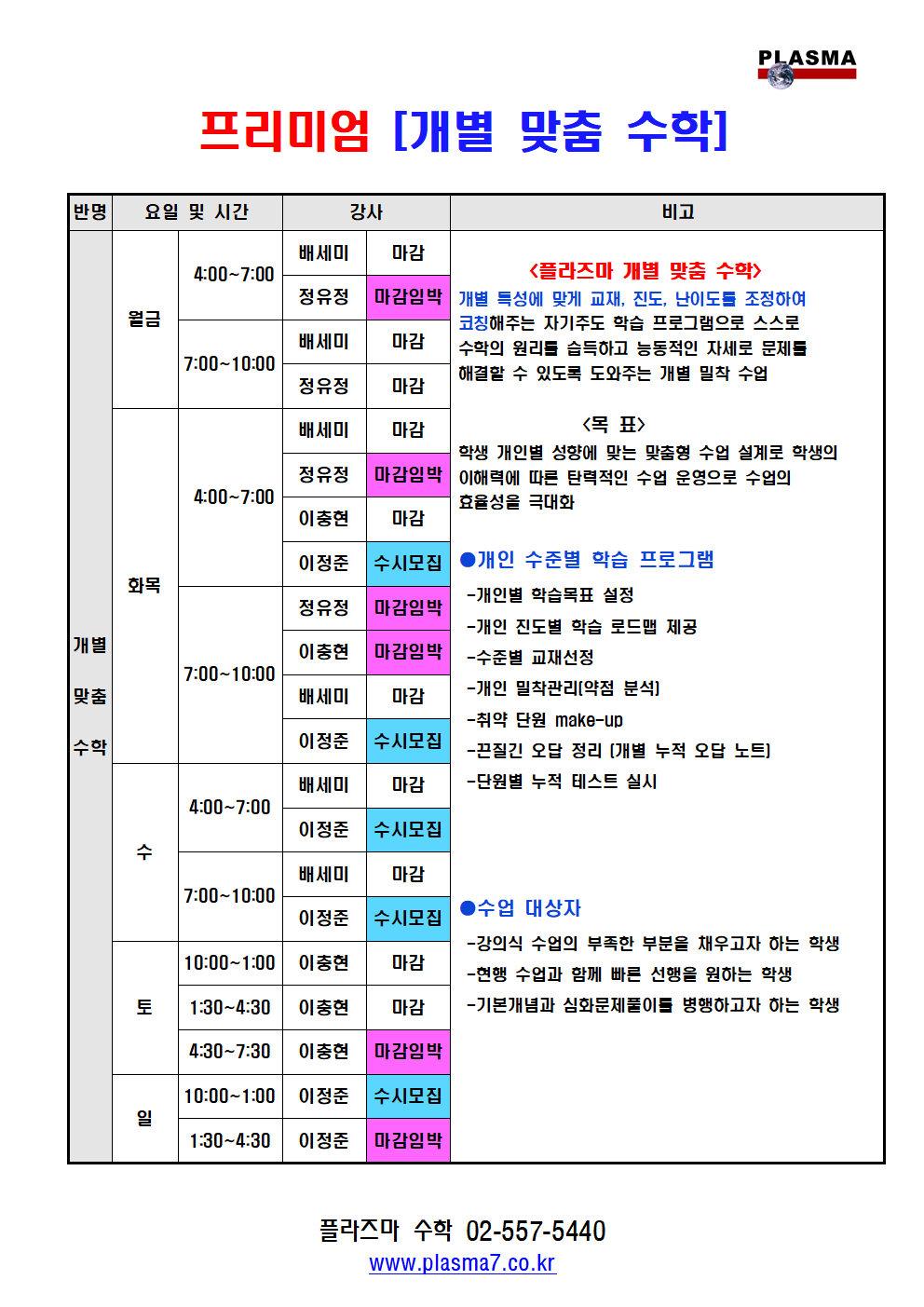 플라즈마학원 모든 강좌들을 확인 해보세요