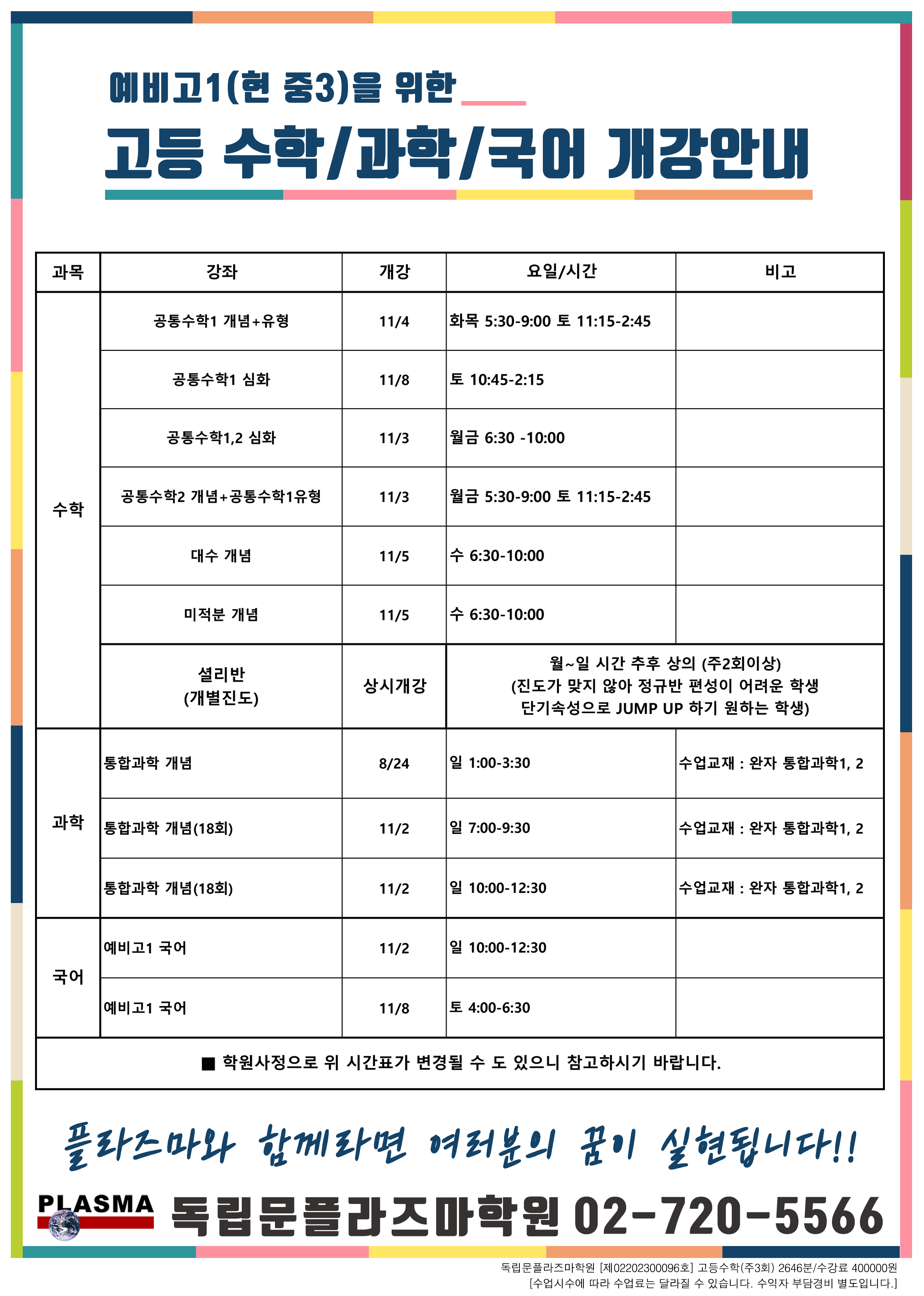 시간표를 확인하신 후 상담/문의 바랍니다.