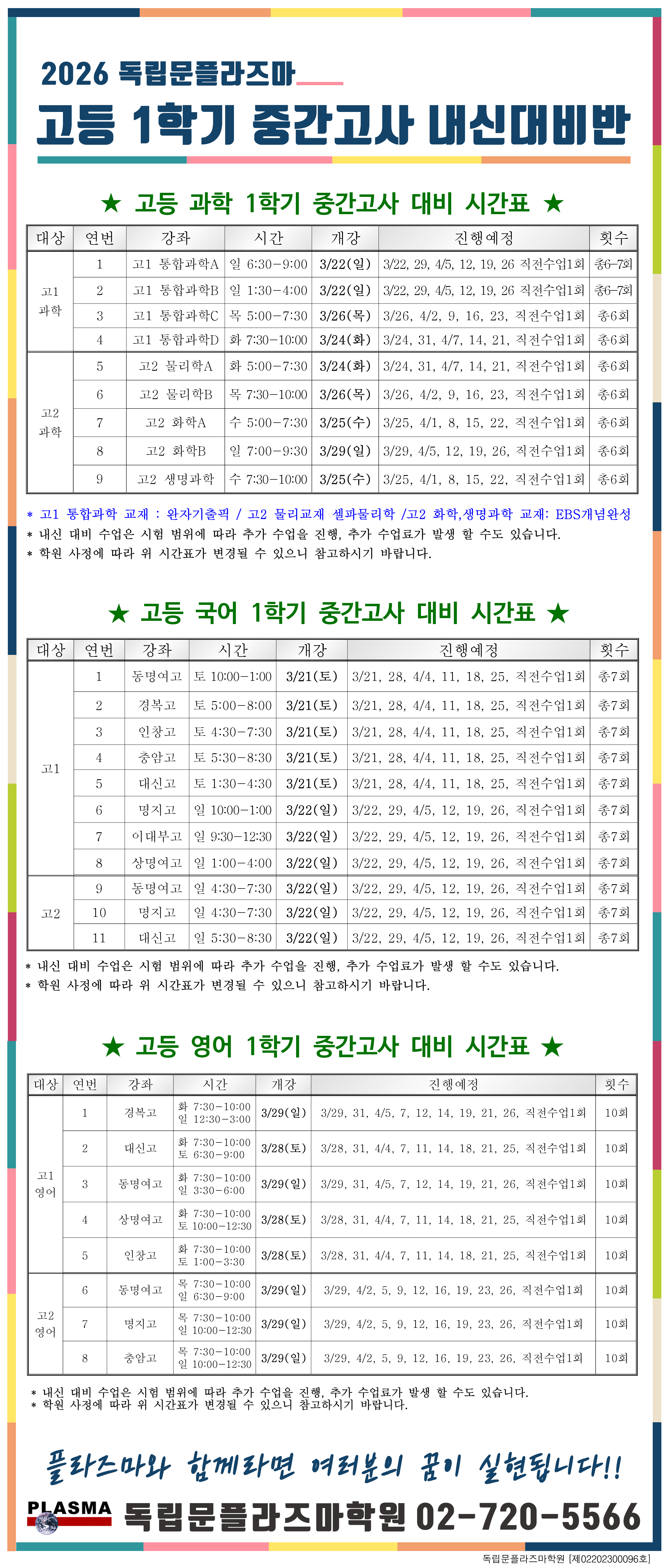 시간표를 확인하신 후 상담/문의 바랍니다.