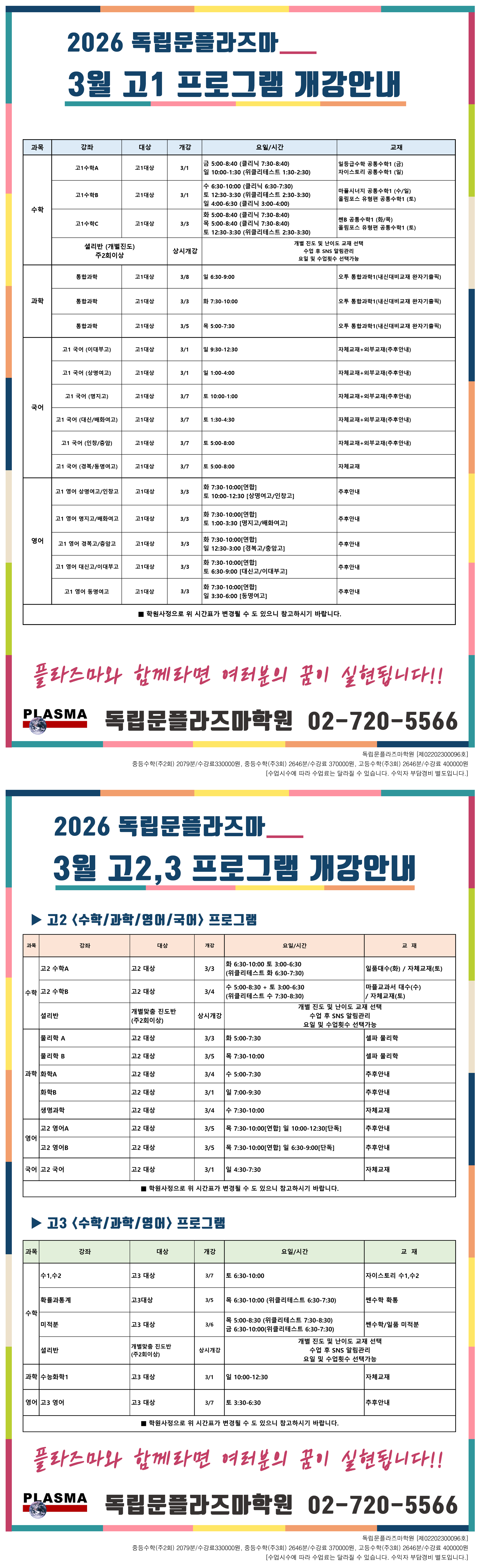 3월 고1,2,3 내신 및 수능 프로그램 안내