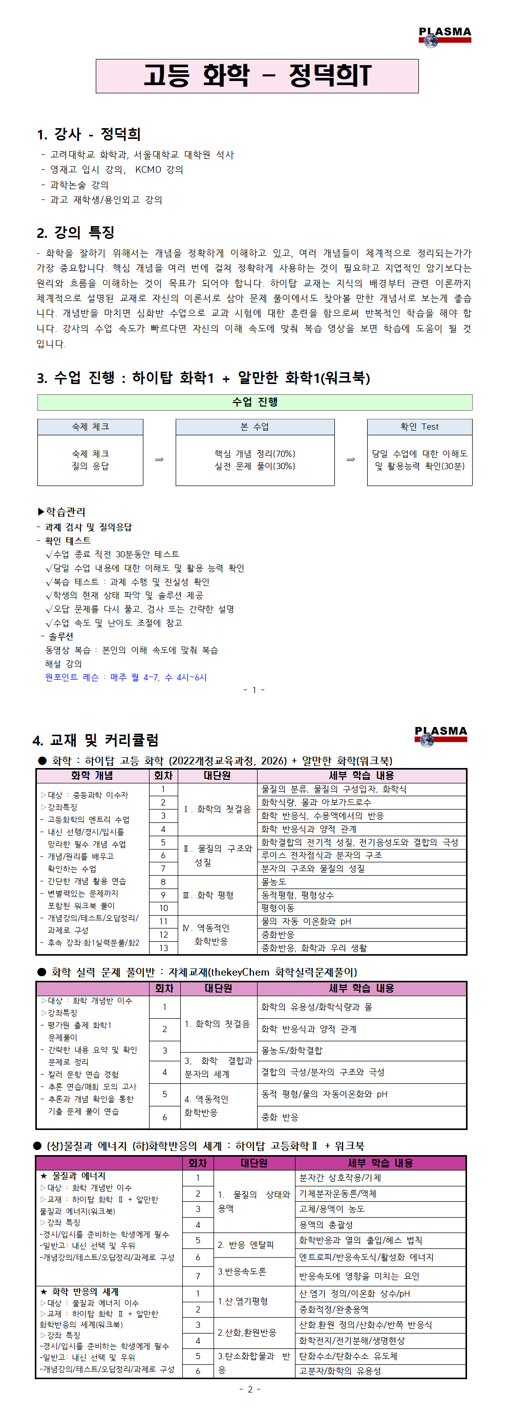 [특목관] 화학 시간표