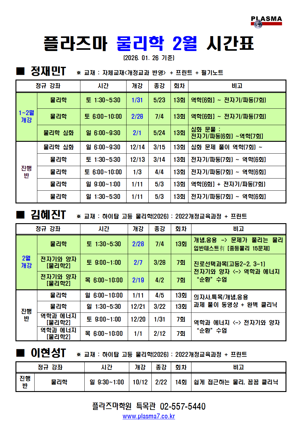 [특목관] 물리 시간표