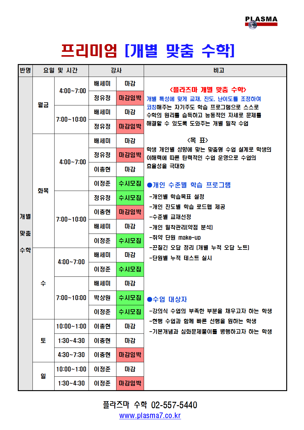 [특목관] 중등수학 개별시간표